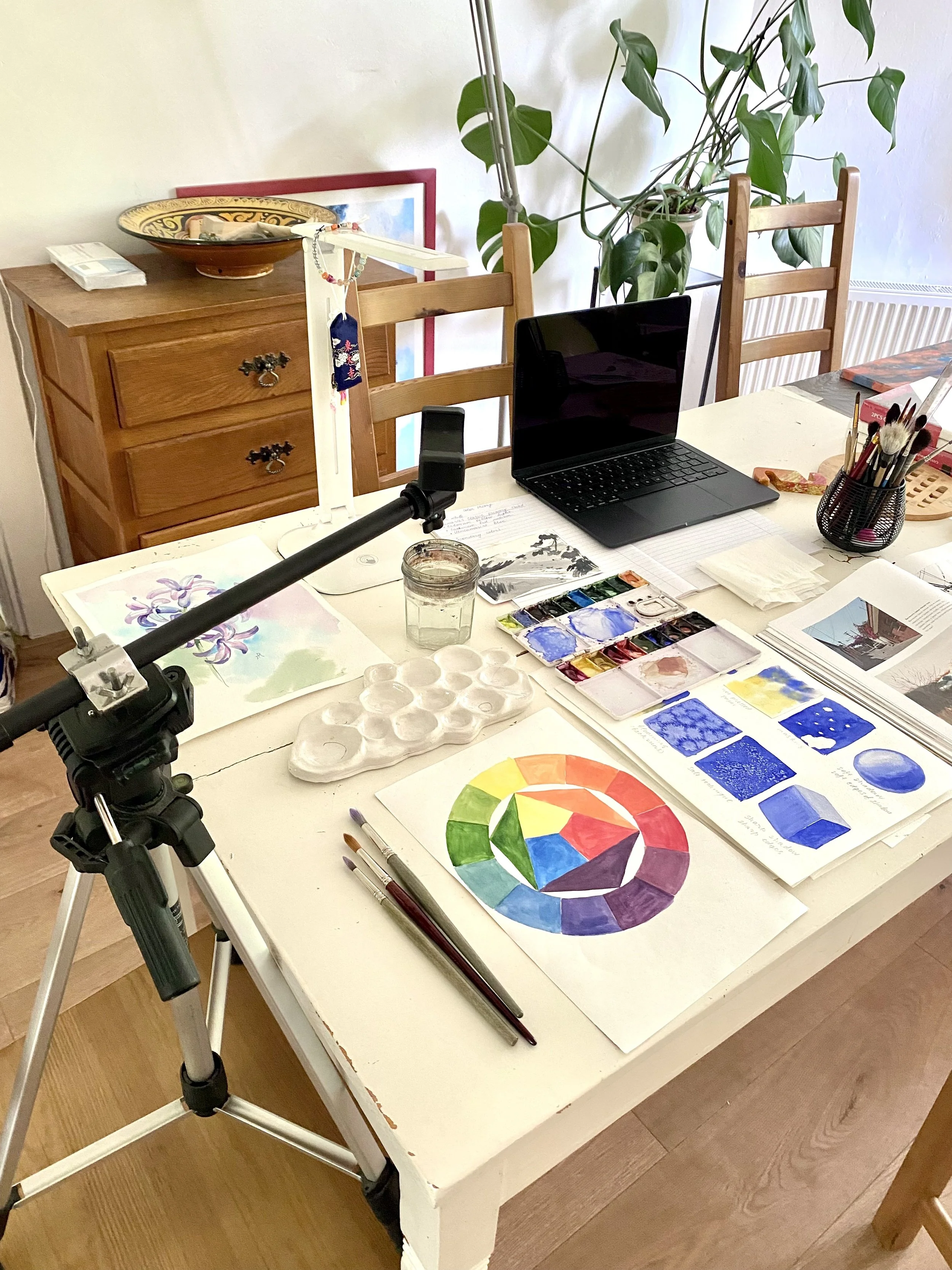 I also host my own themed watercolor workshops held in a studio, in beautiful locations, or outdoors (plein air).